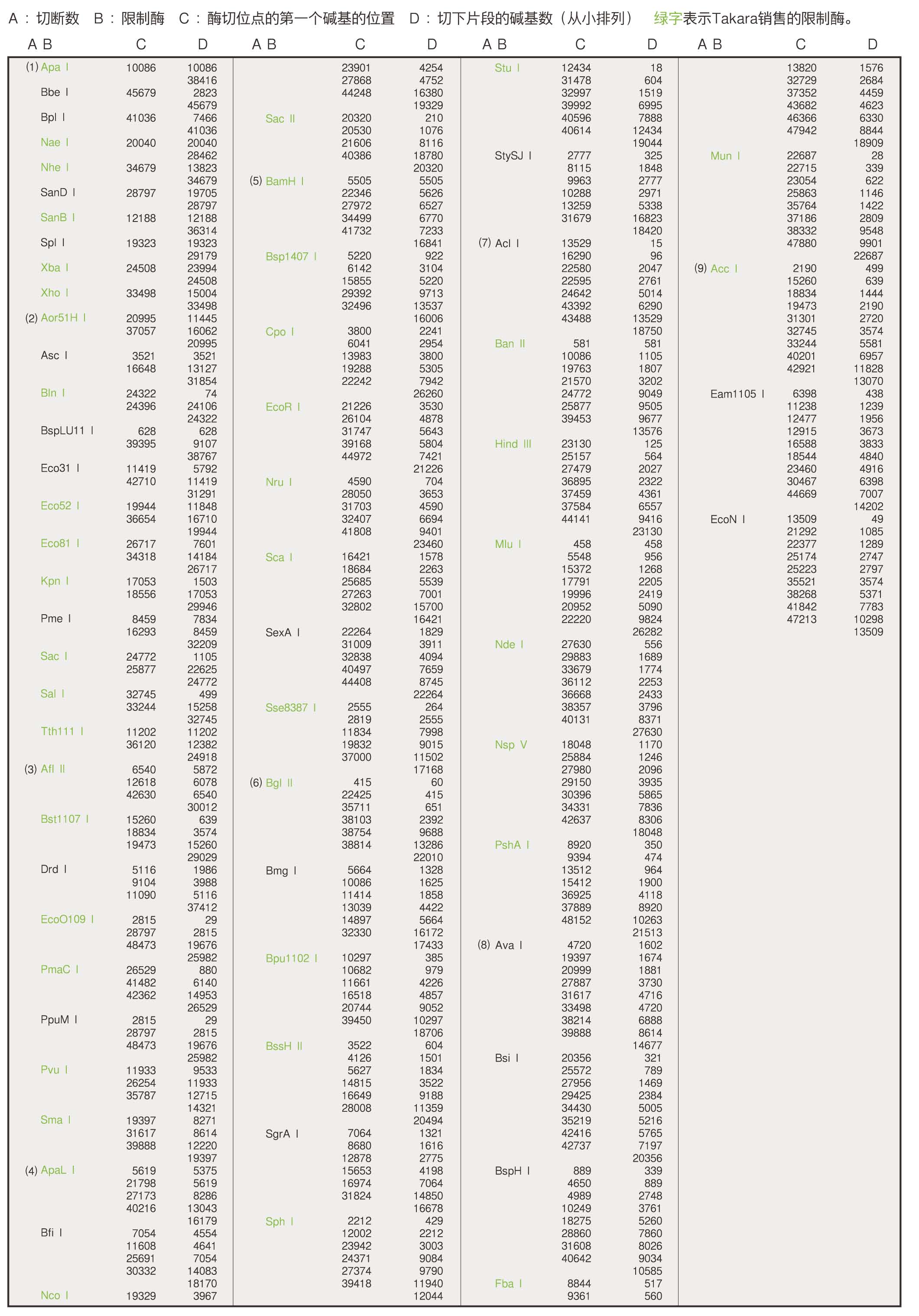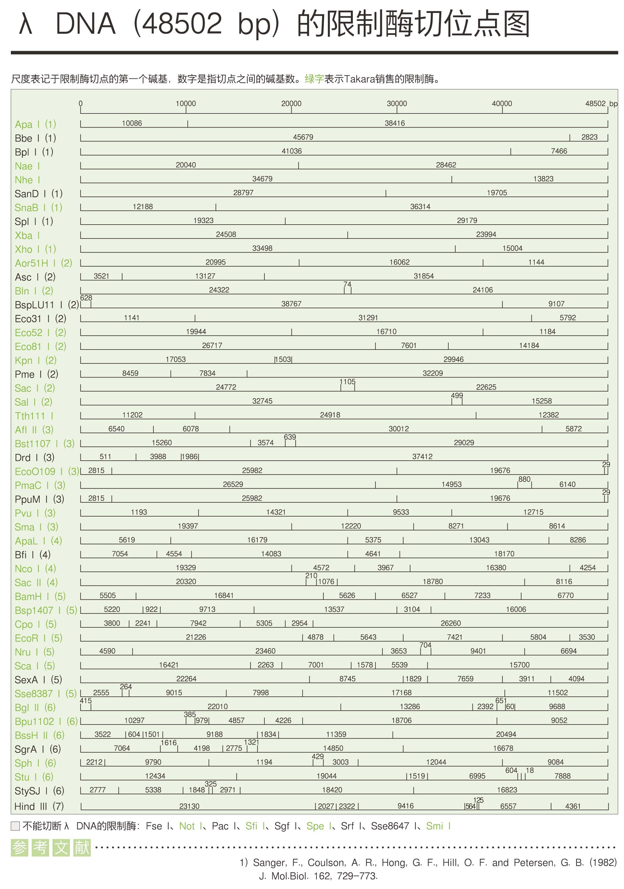 λDNA的限制酶切位點圖