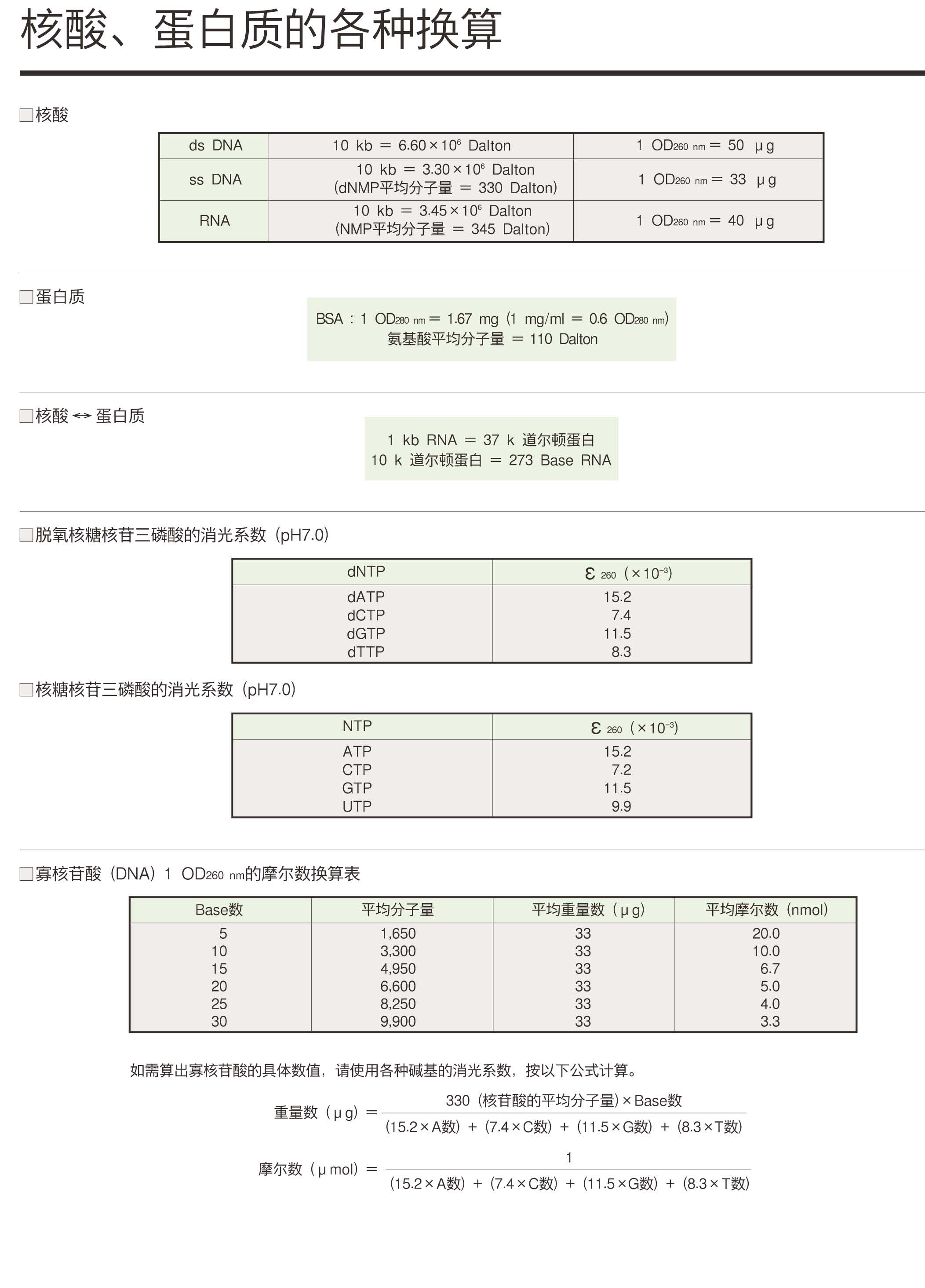 DNA分子質(zhì)量與摩爾數(shù)的換算公式
