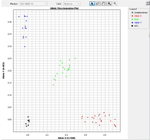KASP技術(shù)原理上類似Taqman檢測,也是基于終端熒光讀取判斷,每孔采用雙色熒光檢測一個(gè)樣本的一個(gè)位點(diǎn)可能的兩種基因型,而KASP技術(shù)與Taqman技術(shù)不同的是,它不需要每個(gè)SNP位點(diǎn)都去合成特異的熒光引物,它基于自己獨(dú)特的ARM PCR原理,讓所有的位點(diǎn)檢測最終都使用通用熒光引物擴(kuò)增,這大大降低了LGC KASP的試劑成本,既有金標(biāo)準(zhǔn)的準(zhǔn)確,又降低了使用成本,比Taqman還具有更好的位點(diǎn)適應(yīng)性,所以在醫(yī)學(xué)、農(nóng)學(xué)檢測方面KASP都有非常好的應(yīng)用。