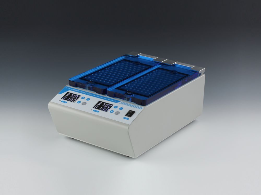 2. 兩個獨(dú)立孵育倉,單獨(dú)定時控溫,互不影響,每個孵育倉可同時存放12卡,處理樣品快速高效。