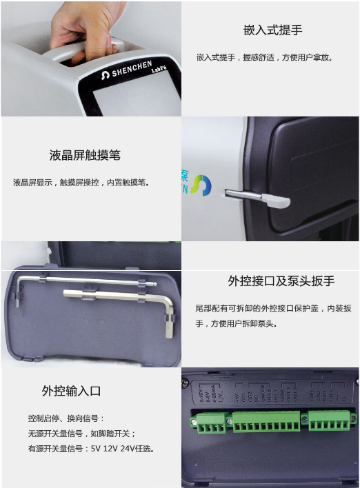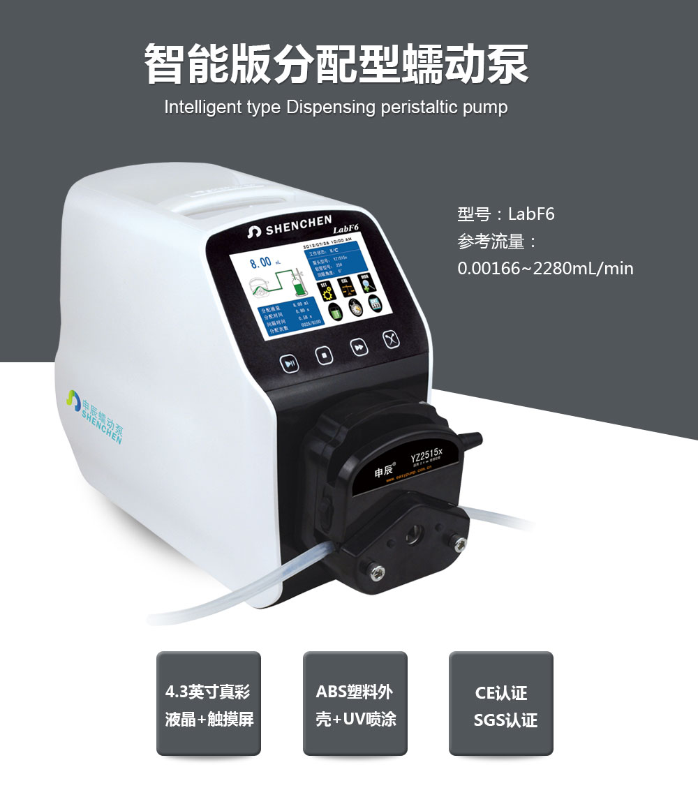 智能分配型工業(yè)蠕動(dòng)泵,采用ABS工程塑料外殼,加噴UV涂層,實(shí)現(xiàn)防腐蝕,防靜電保護(hù)。流線型機(jī)身設(shè)計(jì),工業(yè)級(jí)4.3英寸真彩色顯示,觸摸屏操作,轉(zhuǎn)速范圍1-600轉(zhuǎn)/分鐘,流量范圍0.00166-2280ml/min,可預(yù)設(shè)分配流量,分配時(shí)間,間隔時(shí)間,分配次數(shù),回吸角度,動(dòng)畫顯示工作狀態(tài),分配數(shù)據(jù),設(shè)定參數(shù),系統(tǒng)配置同屏顯示??蛇B接腳踏開關(guān)或開關(guān)信號(hào),實(shí)現(xiàn)遠(yuǎn)程控制,適用于大流量、高效率、高精度灌裝。
