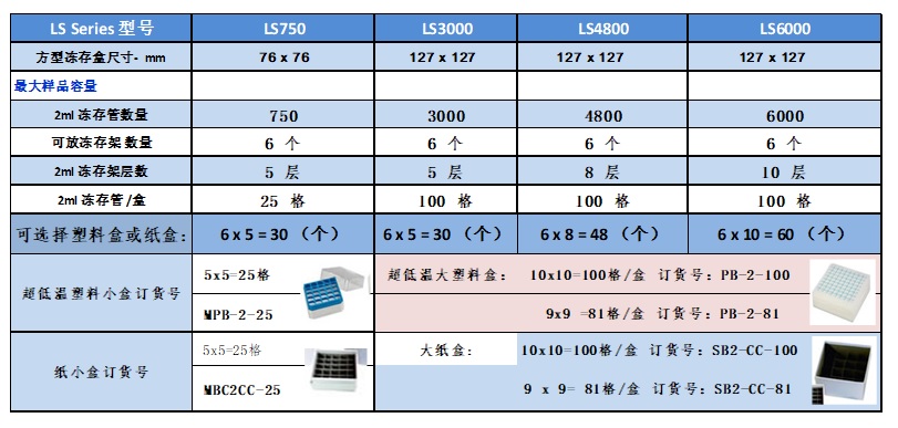 LS Series樣品架/盒子配置表: