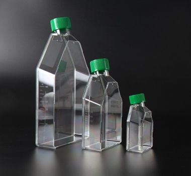 細(xì)胞培養(yǎng)瓶的培養(yǎng)面積有三種:25 cm2, 75cm2 和 175cm2。培養(yǎng)瓶側(cè)面的清晰刻度幫助提高了培養(yǎng)液容量的準(zhǔn)確性,磨砂區(qū)域方便做標(biāo)記用以區(qū)分不同實(shí)驗(yàn)?zāi)康钠孔印1巢康募咕€使得培養(yǎng)瓶容易層疊,瓶頸的設(shè)計(jì)可以讓移液管和細(xì)胞刮刀進(jìn)入到瓶內(nèi)的任一角度。