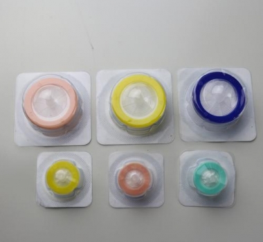 針頭式過濾器是主要用于溶液除菌過濾的一次性實驗耗材,共有四種濾膜可以選擇:聚醚砜(PES), 混纖膜(MCE), 聚偏氟乙烯(PVDF)和有機系尼龍66(NYLON)。為了便于區(qū)別濾膜的類型,過濾器外殼有四種相對應的顏色。濾膜孔徑分為0.22um和0.45um兩種,過濾器直徑有15mm和30mm。
